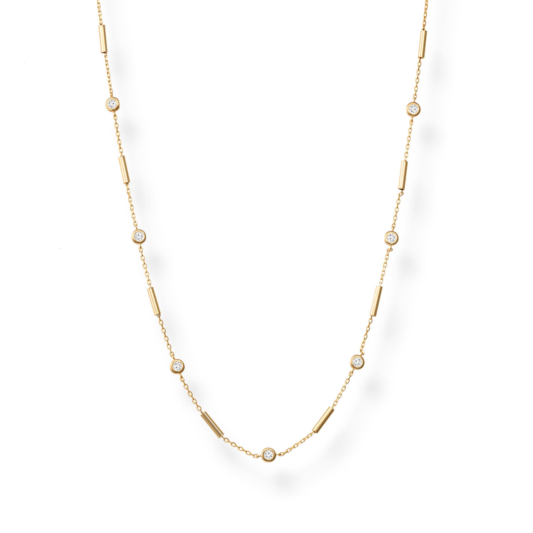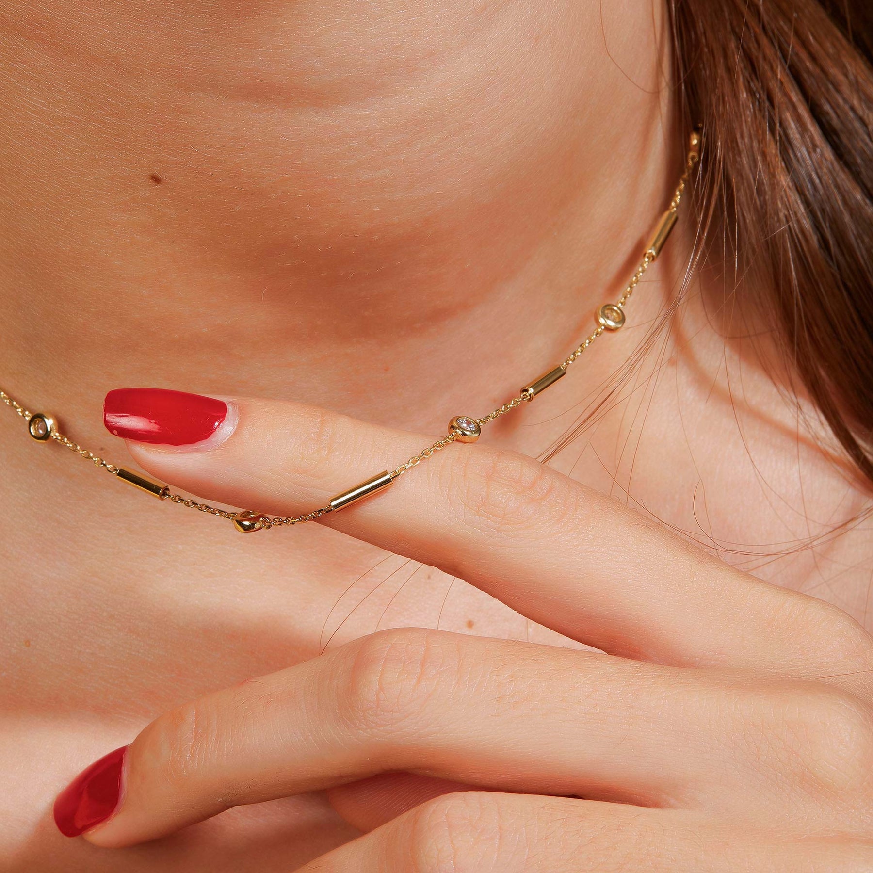 • Complete your look with the Jale CZ Bezel Bar Chain Necklace, crated in 18K gold vermeil with zircon stones. Tarnish-resistant and hypoallergenic, perfect for timeless elegance! An ideal gift for Mother's Day, Valentine's Day, or any special occasion.