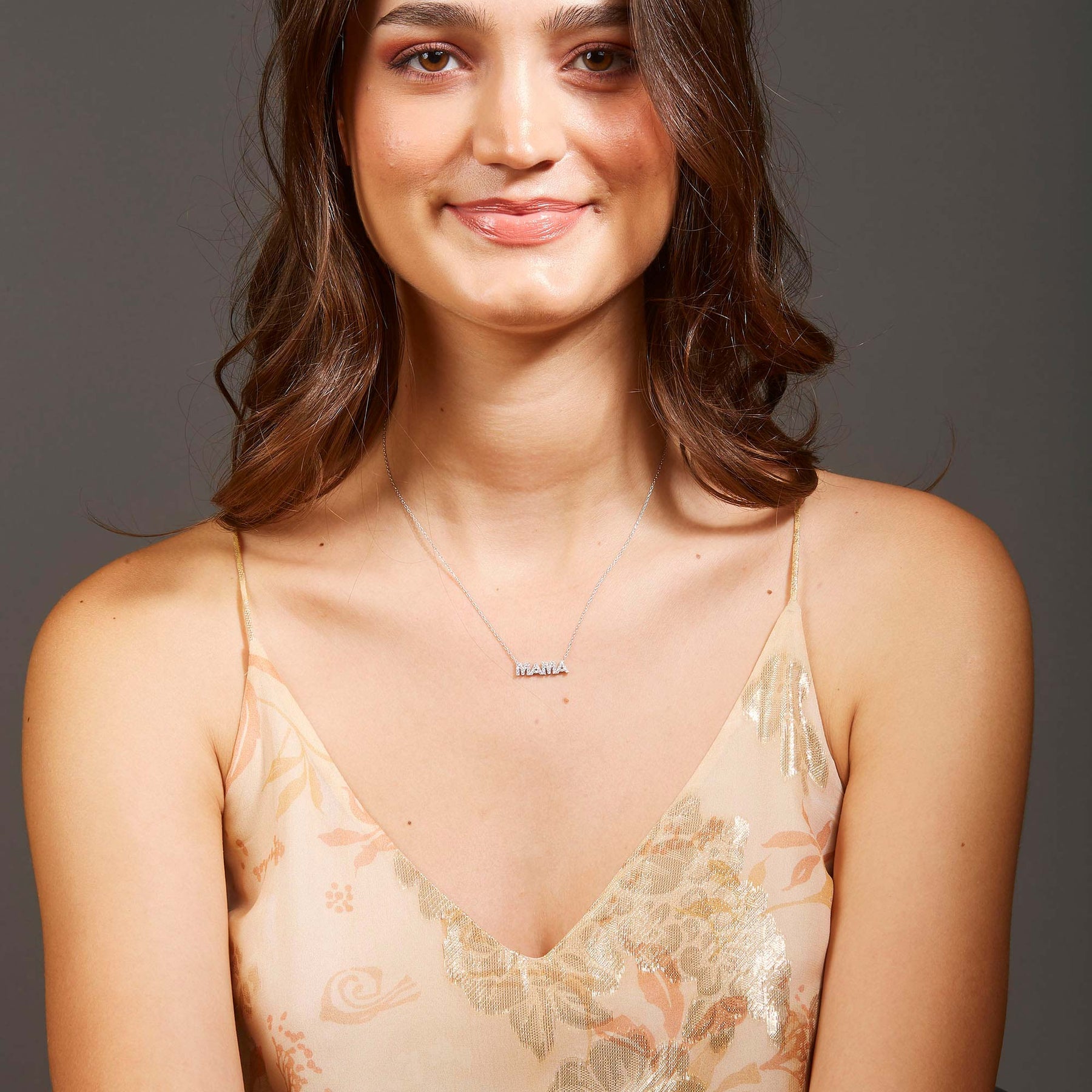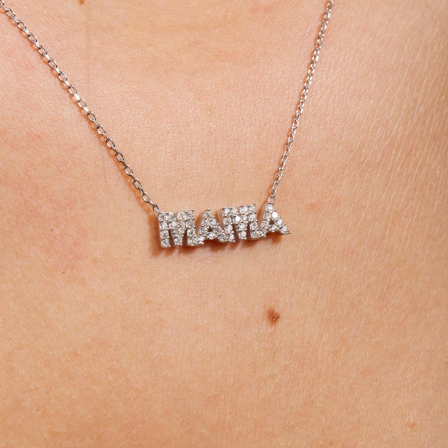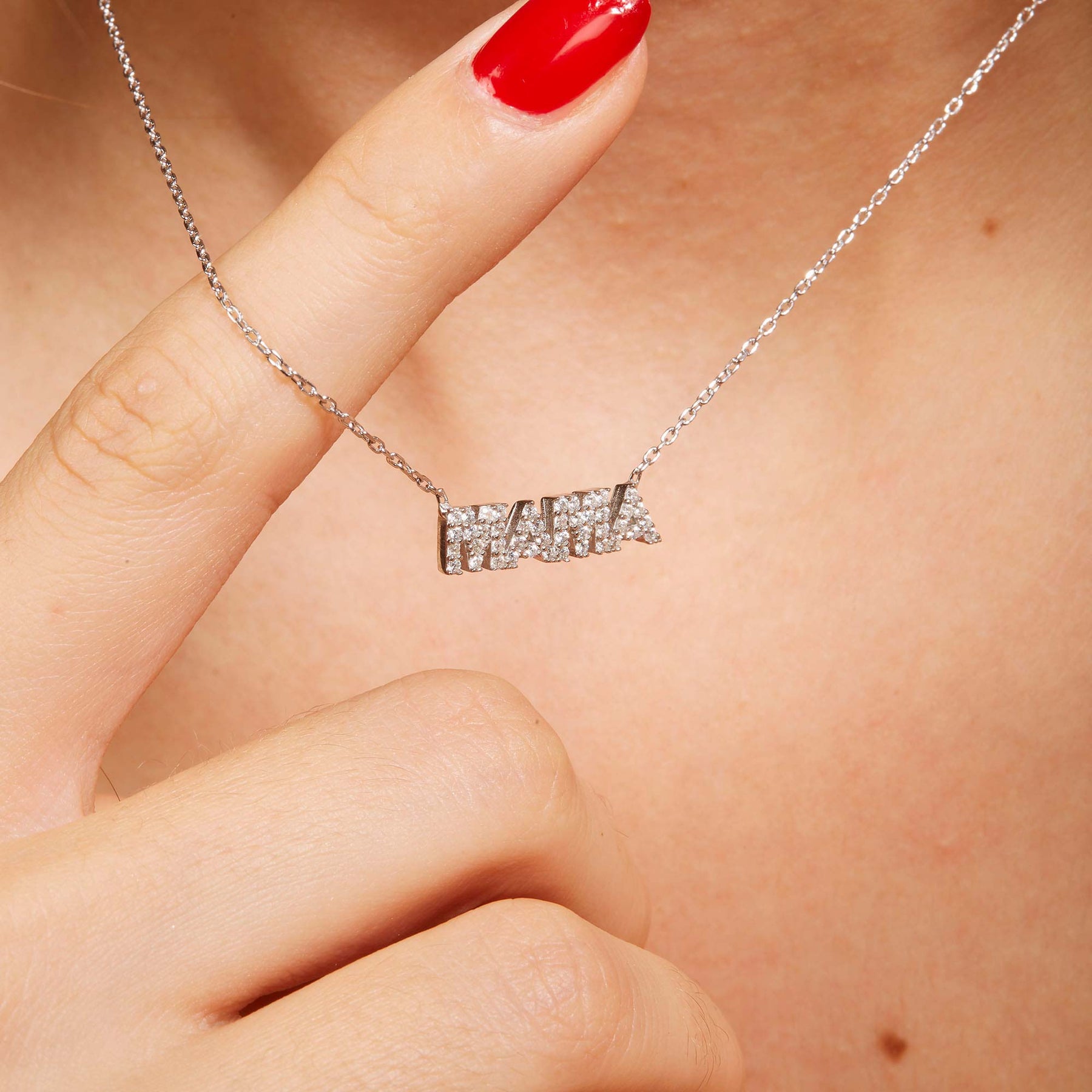 • Complete your look with the Mama Pave Nameplate Necklace, crated in rhodium vermeil with zircon stones. Tarnish-resistant and hypoallergenic, perfect for timeless elegance! An ideal gift for Mother's Day, Valentine's Day, or any special occasion.