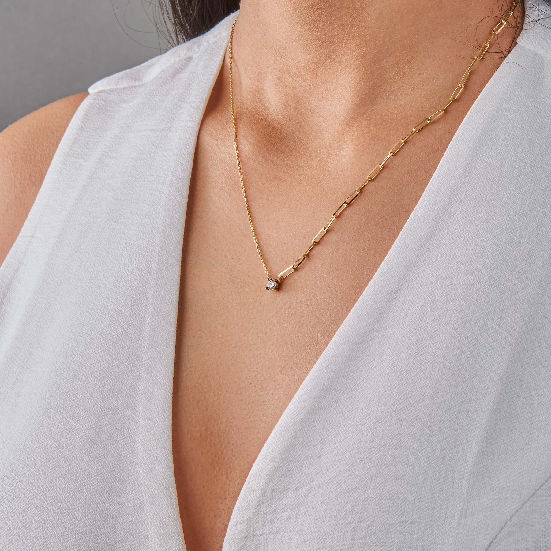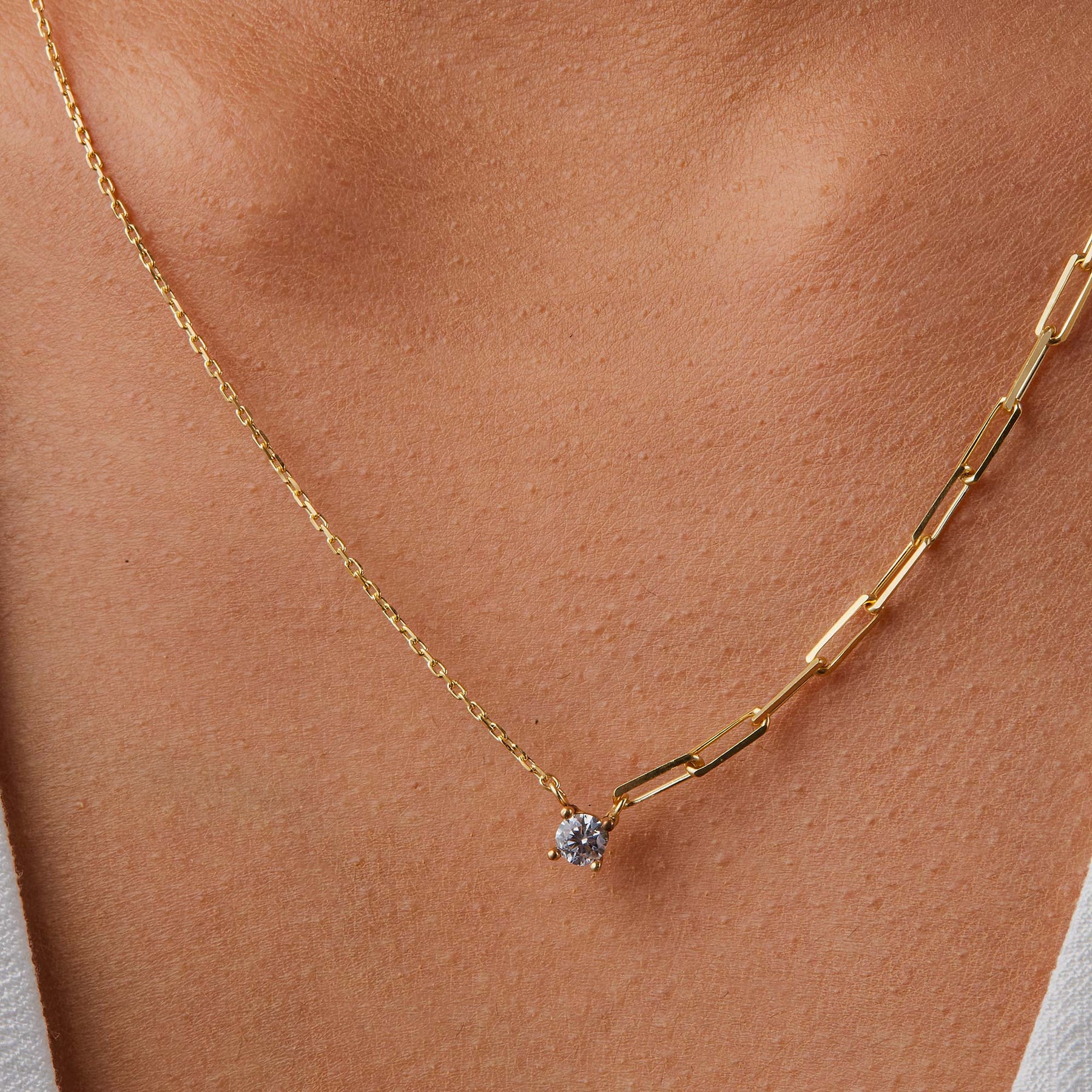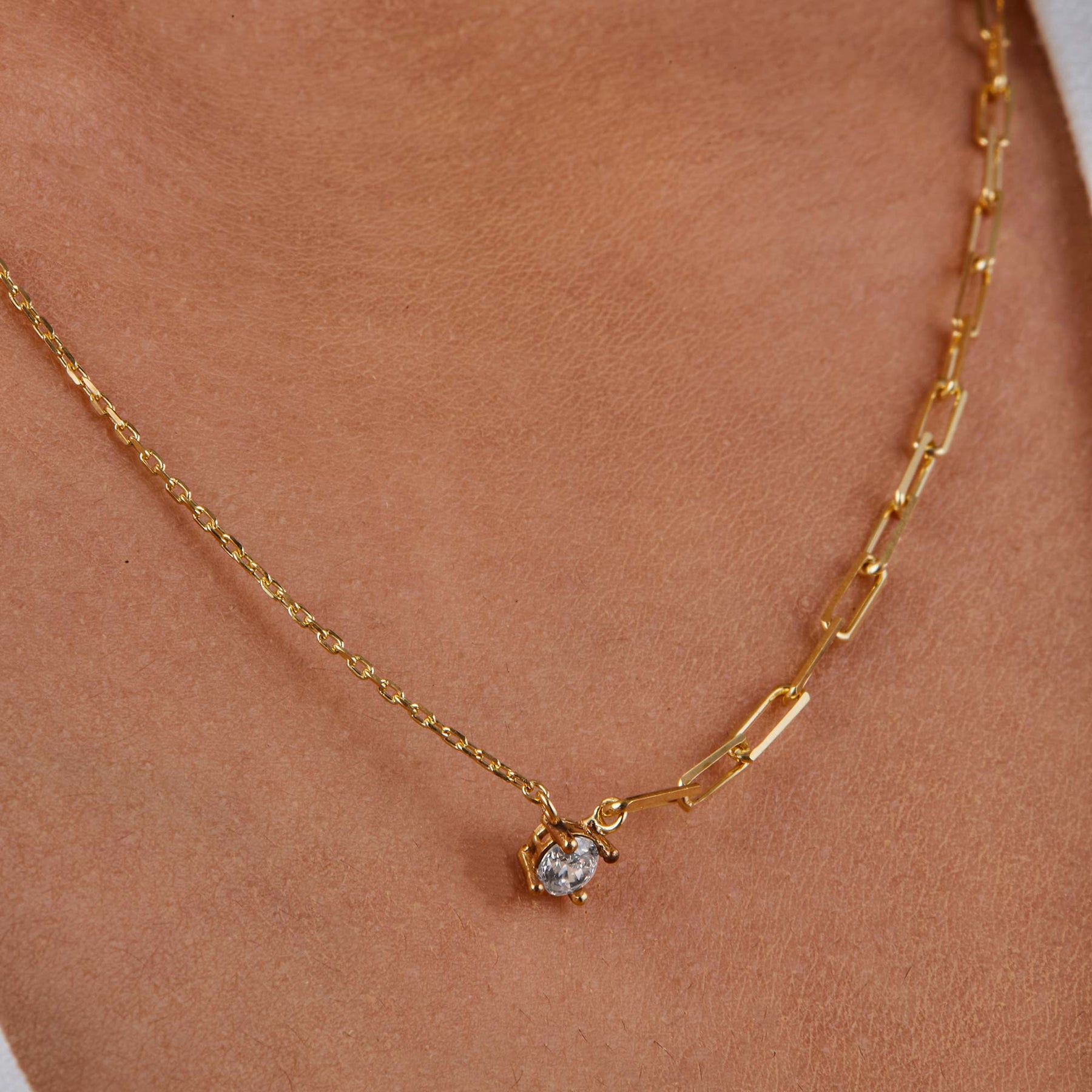 • Complete your look with the Munira CZ Solitare Paperclip Necklace, crated in 18K gold vermeil with zircon stones. Tarnish-resistant and hypoallergenic, perfect for timeless elegance! An ideal gift for Mother's Day, Valentine's Day, or any special occasion.